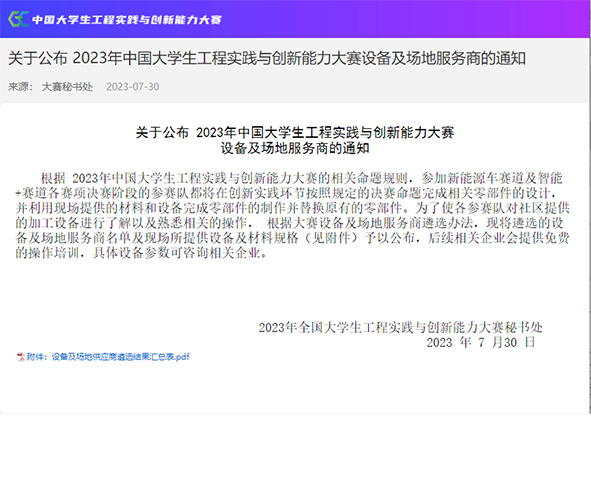 7月30日,廣州華之尊光電科技有限公司再次成功入選2023年中國大學生工程實踐與創新能力大賽激光加工設備服務商及激光技術支持單位。