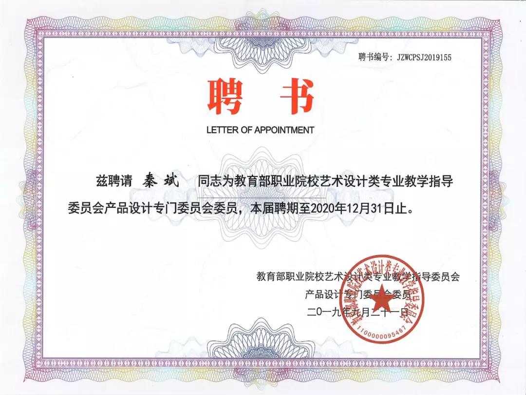 熱烈祝賀|廣州華之尊光電科技有限公司總經理秦斌榮任教育部職業院校藝術設計類專業教學指導委員會產品設計專門委員會委員